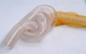 PU DUCT HOSE is made of abrasion resistant Polyurethane with copper plated spring steel spiral embedded into wall. Very light and extremely flexible hose with good tensile and abrasion strengths and ultimate elongation. Free of softeners, halogen free, physiological safe, cadmium free and excellent elasticity. Hose will also remain flexible below 0°C.